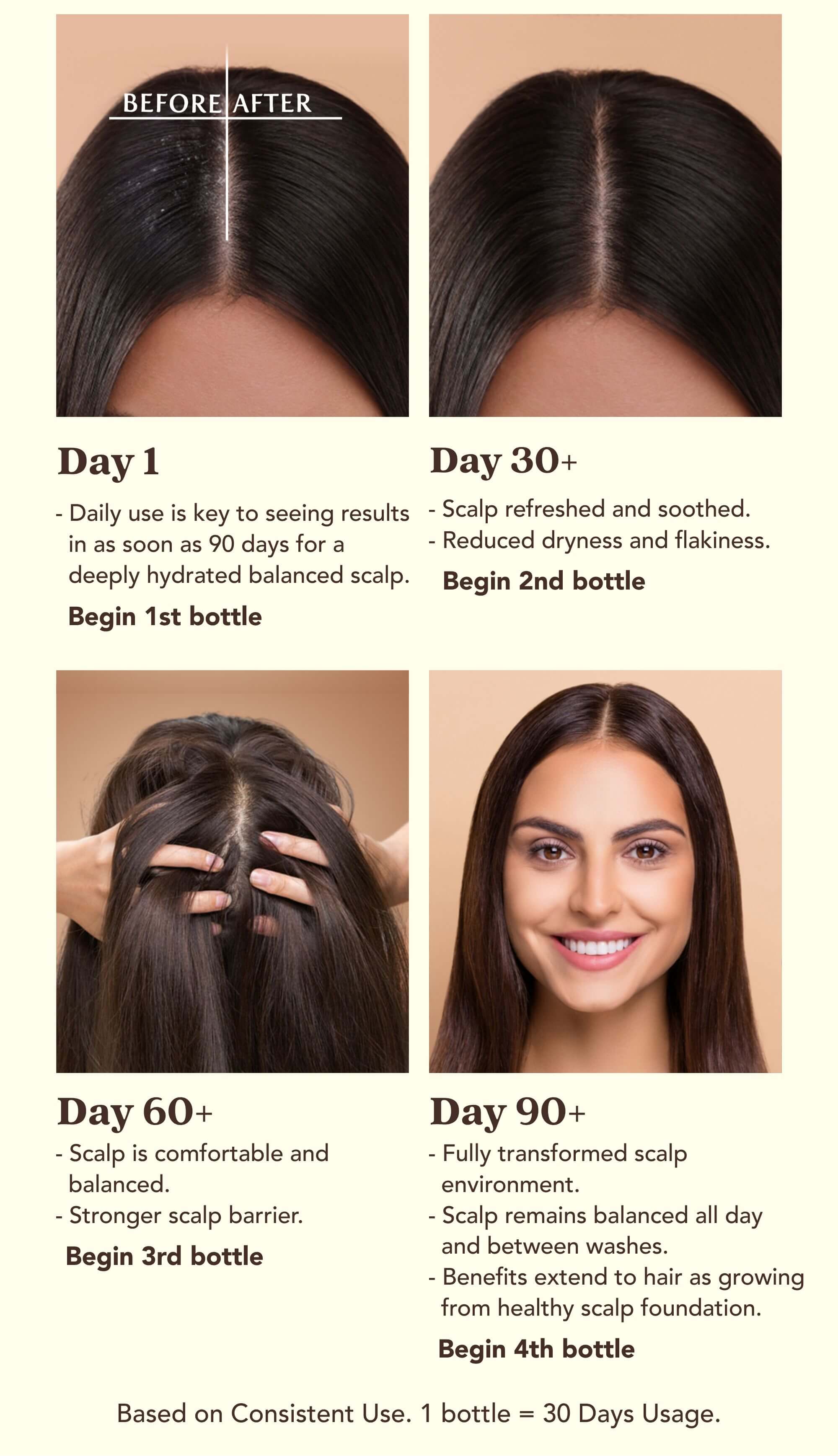 You can use the scalp serum daily or every other day, depending on your scalp's needs. Consistent use helps maintain scalp moisture levels and keeps the skin barrier balanced.